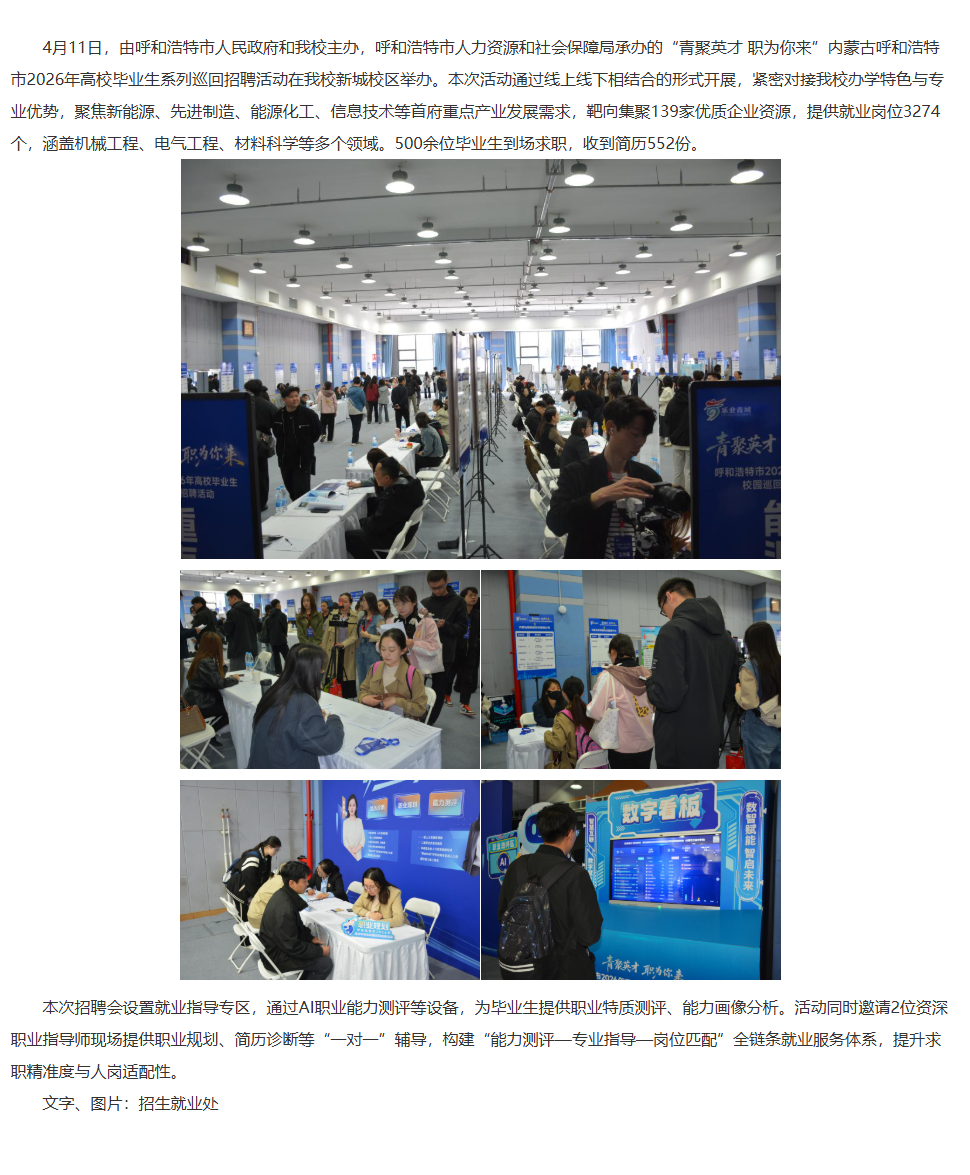 “青聚英才 职为你来”内蒙古呼和浩特市2026年高校毕业生系列巡回招聘活动在我校举办